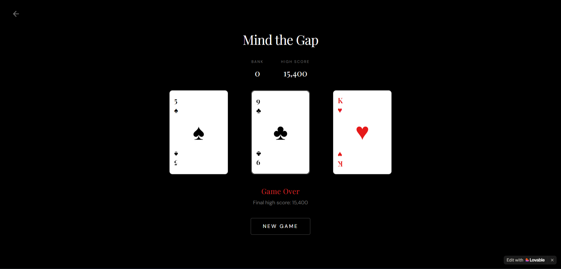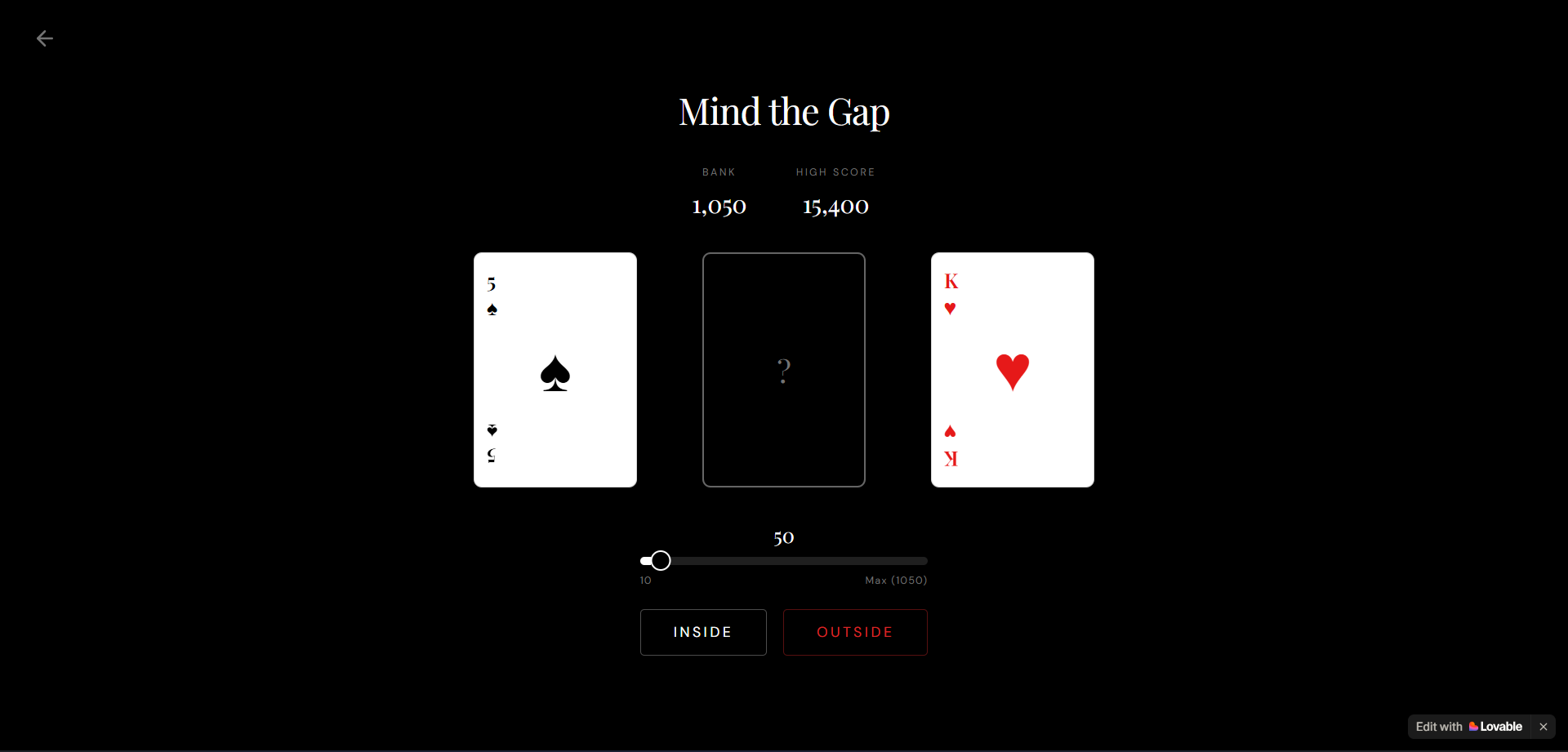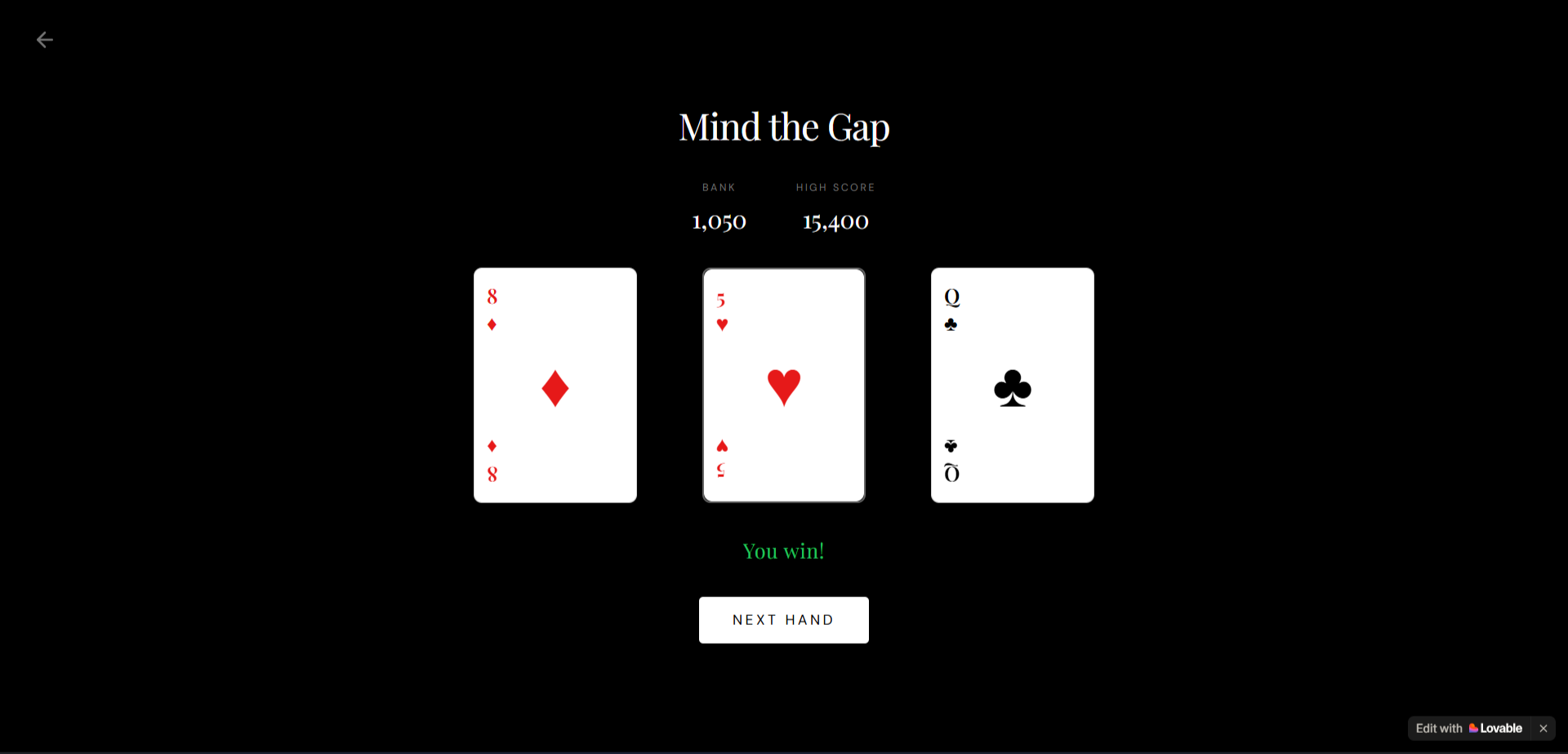 Mind the Gap is a minimalist digital version of the classic card game Acey Deucey.
